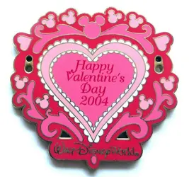 2004 Happy Valentine’s Day Base is an Open Edition pin from the Build-a-Pin: 1st Generation pin series. It was originally released in February, 2004 and was available from Walt Disney World .