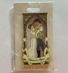 Rapunzel & Flynn is a Limited Edition (LE) 300 pin from the Wedding Series pin series. It was originally released on , 2024 and was available from Walt Disney Imagineering .