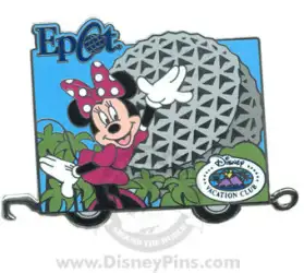 EPCOT - Minnie Mouse is a Limited Edition (LE) 3000 pin from the Disney Vacation Club Caravan pin series. It was originally released in January, 2009 and was available from Disney Vacation Club .