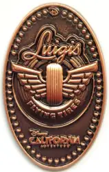 Cars Land - Luigi's Flying Tires is a Limited Edition (LE) 250 pin from the Pressed Pennies Series pin series. It was originally released on , 2013 and was available from Walt Disney Imagineering .