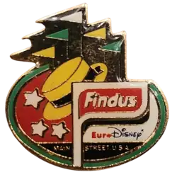 Findus (Main Street, U.S.A.) is a Limited Release pin from the EuroDisney Sponsor Set pin series. It was originally released on , 1992 and is technically a Miscellaneous Non-Disney pin, so while being considered affiliated with Disney, it is not allowed to be traded in the Disney Parks.
