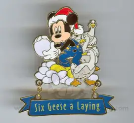Six Geese A Laying - Mickey Mouse is an Open Edition pin from the 12 Days of Christmas 2004 pin series. It was originally released in January, 2004 and was available from Disneyland Resort .