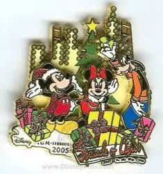 Mickey, Minnie & Goofy is a Limited Edition (LE) 2000 pin from the Osborne Family Spectacle of Dancing Lights pin series. It was originally released on , 2005 and was available from Disney Vacation Club .