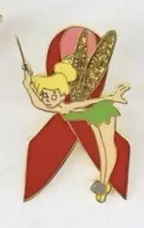 Tinker Bell Red Ribbon (AIDS) is a Limited Edition (LE) 250 pin from the European Bootleg pin series. It is an Unlicensed (Fantasy) pin, so therefore it is not allowed to be traded in the Disney Parks.