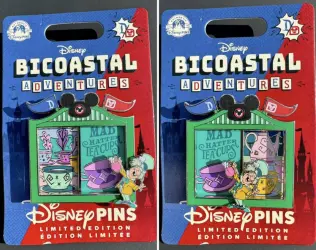 Mad Tea Party is a Limited Edition (LE) 4000 pin from the Bicoastal Adventures Series pin series. It was originally released on , 2024 and was available from Multiple Sources (WDW, DLR, etc.).