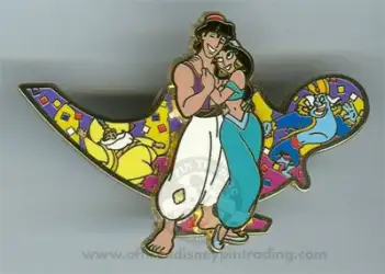 Jasmine and Aladdin is an Open Edition pin from the Princess Icon Series - Jasmine pin series. It was originally released on , 2005 and was available from Multiple Sources (WDW, DLR, etc.).