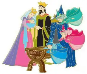 The King, Queen, and Baby Aurora with the Good Fairies is a Limited Edition (LE) 250 pin from the Sleeping Beauty Lifespan Series pin series. It was originally released on , 2006 and was available from Disney Store US .