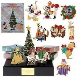 Complete Collection is a Limited Edition (LE) 1000 pin from the Mickey's Christmas Surprise Mystery Set pin series. It was originally released in December, 2005 and was available from Disney Store US .