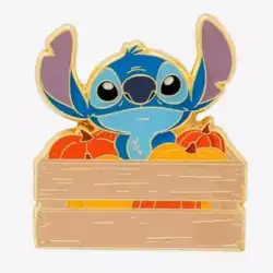 Stitch in Pumpkin Crate is an Open Edition pin from the BoxLunch - Lilo & Stitch Fall Activities Blind Box pin series. It was originally released on , 2024 and was available from Loungefly .