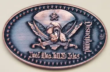 Pirates of the Caribbean - Dead Men Tell No Tails is a Limited Edition (LE) 250 pin from the Pressed Pennies Series pin series. It was originally released on , 2013 and was available from Walt Disney Imagineering .