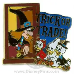Trick or Trade! is a Limited Edition (LE) 500 pin from the Pin Trading Nights Collection 2007 pin series. It was originally released in October, 2007 and was available from Disneyland Resort .