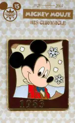 Mickey's Christmas Carol (1983) is a Limited Edition (LE) 1000 pin from the Mickey Mouse: His Chronicle 1928-2007 pin series. It was originally released on , 2007 and was available from Disney Store Japan .