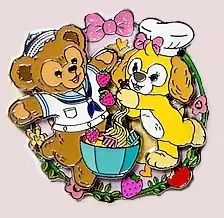Cookie and Duffy is an Open Edition pin from the Friend of Duffy pin series. It was originally released on , 2018 and was available from Hong Kong Disneyland .