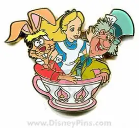 Mad Tea Party is an Open Edition pin from the Disneyland 2007 - Characters in Ride Vehicles pin series. It was originally released on , 2007 and was available from Disneyland Resort .
