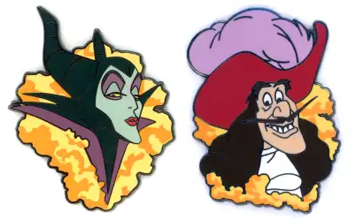 Pin features Captain Hook and Maleficent from Sleeping Beauty and Peter Pan (movie)