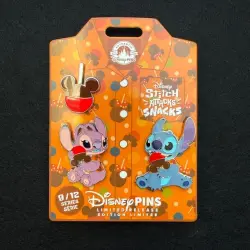 Stitch and Angel with Candy Apple Set - September - 9/12 - Full Set is a Limited Release 3-pin set from the Stitch Attacks Snacks Series pin series. It was originally released on , 2024 and was available from Multiple Sources (WDW, DLR, etc.).