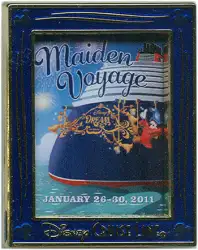 Maiden Voyage Poster is a Limited Edition (LE) 1250 pin from the Disney Dream Inaugural/Maiden Voyage pin series. It was originally released on , 2011 and was available from Disney Cruise Line .