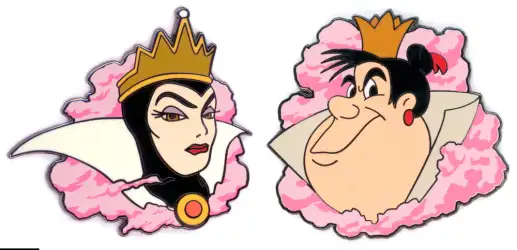 Pin features The Queen of Hearts and The Evil Queen from Alice in Wonderland (movie) and Snow White & the Seven Dwarfs