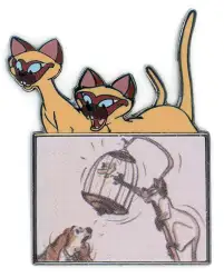 Si and Am is a Limited Edition (LE) 2500 pin in the Si & Am and the Evil Queen 2-pin set from the Disney Catalog - Villains With a Sketch Set pin series. It was originally released in January, 2003 and was available from Disney Store US .