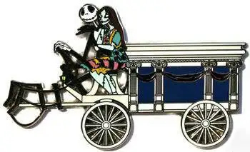 Jack & Sally on the Haunted Mansion Hearse is a Limited Edition (LE) 500 pin from the Disneyland Cast Exclusive Pin of the Month 2007 pin series. It was originally released in October, 2007 and was available from Theme Park Cast Member Exclusive .