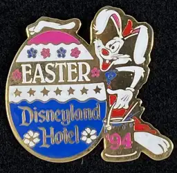 Disneyland Hotel ‘94 - Roger Rabbit is a Limited Release pin from the DLR Cast Member Holiday Work Gifts - Easter pin series. It was originally released on , 1994 and was available from Disneyland Resort .