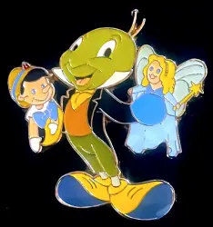 Jiminy, Pinocchio and Blue Fairy is a Limited Edition (LE) 250 pin from the Puppet Pals (2010) pin series. It was originally released on , 2010 and was available from Disney Store US .