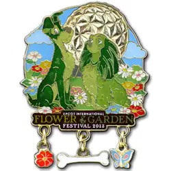 Lady and the Tramp is a Limited Edition (LE) 5000 pin from the Epcot International Flower & Garden Festival 2013 pin series. It was originally released on , 2013 and was available from Walt Disney World .