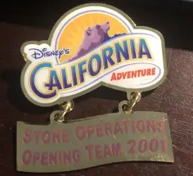 DCA Store Operations Opening 2001 Dangle is a pin. It was originally released 2001 and was available from Disneyland Resort .