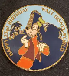 Goofy at the Tower of Terror (Happy 23rd Birthday) is a Limited Edition (LE) 1000 pin from the Company D - Walt Disney World 25th Anniversary Commemorative Framed Set pin series. It was originally released on , 1996 and was available from Theme Park Cast Member Exclusive .