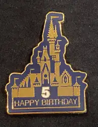 Blue Castle (Happy 5th Birthday) is a Limited Edition (LE) 1000 pin from the Company D - Walt Disney World 25th Anniversary Commemorative Framed Set pin series. It was originally released on , 1996 and was available from Theme Park Cast Member Exclusive .