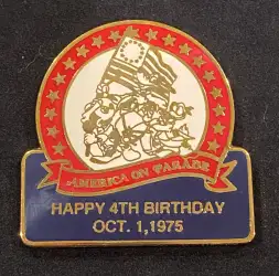 America on Parade (Happy 4th Birthday) is a Limited Edition (LE) 1000 pin from the Company D - Walt Disney World 25th Anniversary Commemorative Framed Set pin series. It was originally released on , 1996 and was available from Theme Park Cast Member Exclusive .