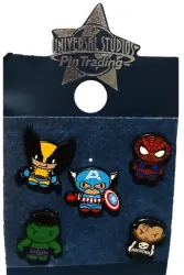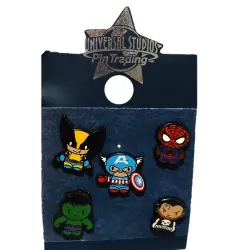 (Universal Studios) Marvel Mini 5 Pin Set is an Open Edition 1-pin set from the Marvel Comics Disney pin series. It was originally released on , 2014 and was available from an Officially Licensed Disney trading pin vendor (see description for more information).