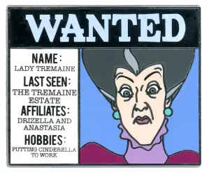 Lady Tremaine is a Limited Edition (LE) 500 pin from the Cast Member Exclusive - Wanted Collection pin series. It was originally released on , 2017 and was available from Theme Park Cast Member Exclusive .