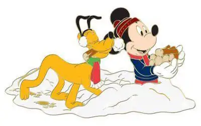 Mickey and Pluto Playing In Snow is a Limited Edition (LE) 250 pin from the Winter whimsy pin series. It was originally released on , 2009 and was available from Disney Store US .