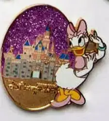 Daisy is an Open Edition pin from the Character & Castle Mystery Tin Collection pin series. It was originally released on , 2014 and was available from Hong Kong Disneyland .