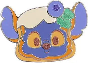 Stitch Frosted Blueberry Loaf is an Open Edition pin in the Unopened Pouch 16-pin set from the Munchlings Mystery Collection (Series 4) pin series. It was originally released on , 2024 and was available from Multiple Sources (WDW, DLR, etc.).