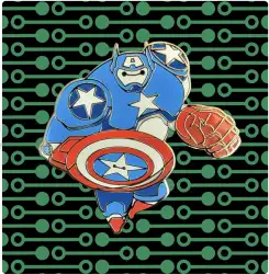 CapMax Mashup Captain America and Baymax is a Limited Edition (LE) 100 pin from the Fantasy Pin Series pin series. It is an Unlicensed (Fantasy) pin, so therefore it is not allowed to be traded in the Disney Parks.