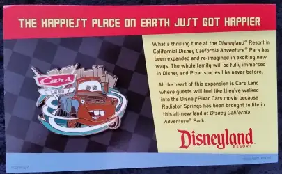 Mater's Junkyard Jamboree is a Limited Release pin from the Travel Agent Carded Promotional Gifts pin series. It was originally released in January, 2012 and was available from Disneyland Resort .