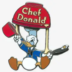 Chef Donald is a Limited Edition (LE) 2000 pin in the Have a Laugh Framed Set 7-pin set from the Have a Laugh! pin series. It was originally released on , 2010 and was available from Multiple Sources (WDW, DLR, etc.).