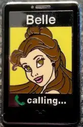 Belle is an Open Edition pin from the 2014 Hidden Mickey - Princess Mobile Phone pin series. It was originally released in July, 2014 and was available from Walt Disney World .