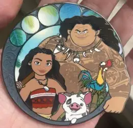Moana, Maui, Pua & Hei Hei is a Limited Edition (LE) 75 pin from the Fantasy Pin Series: Da Vinci Fantasy Pins pin series. It is an Unlicensed (Fantasy) pin, so therefore it is not allowed to be traded in the Disney Parks.