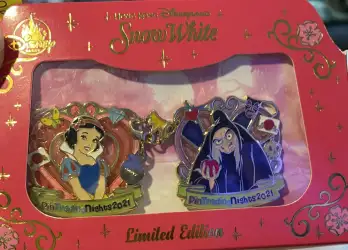 Snow White & Evil Queen 2 pin set is a Limited Edition (LE) 400 pin from the Pin Trading Nights 2021 pin series. It was originally released on , 2021 and was available from Hong Kong Disneyland .