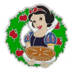 Snow White with Pie is an Open Edition pin from the Festive Wreaths Mystery Collection pin series. It was originally released on , 2024 and was available from Multiple Sources (WDW, DLR, etc.).