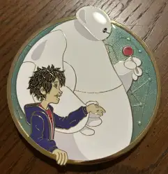 Baymax and hiro together is a Limited Edition (LE) 75 pin from the Fantasy Pin Series: Da Vinci Fantasy Pins pin series. It is an Unlicensed (Fantasy) pin, so therefore it is not allowed to be traded in the Disney Parks.