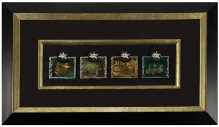 Framed Set is a Limited Edition (LE) 50 pin from the Ride Thru Series: The Haunted Mansion Holiday Nightmare pin series. It was originally released on , 2006 and was available from Walt Disney Imagineering .