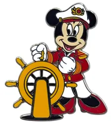 Captain Minnie at the wheel is an Open Edition pin from the Disney Cruise Line pin series. It was originally released on , 2024 and was available from Disney Cruise Line .