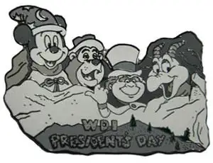 2008 - Disney Characters on Mount Rushmore is a Limited Edition (LE) 300 pin from the Presidents' Day pin series. It was originally released on , 2008 and was available from Walt Disney Imagineering .