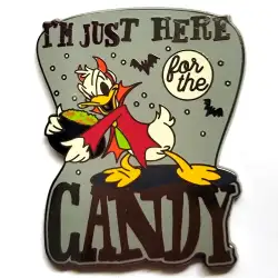 Donald Duck - I'm Just Here for the Candy is an Open Edition pin from the Halloween 2018 pin series. It was originally released on , 2018 and was available from Multiple Sources (WDW, DLR, etc.).