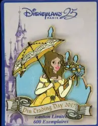 Belle is a Limited Edition (LE) 600 pin from the Pin Trading Day 2017 pin series. It was originally released on , 2017 and was available from Disneyland Resort Paris .