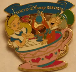 Alice in Wonderland and Mad Hatter is an Open Edition pin from the Tokyo Disney Resort Pin of the Month pin series. It was originally released in July, 2010 and was available from Tokyo Disneyland Resort .
